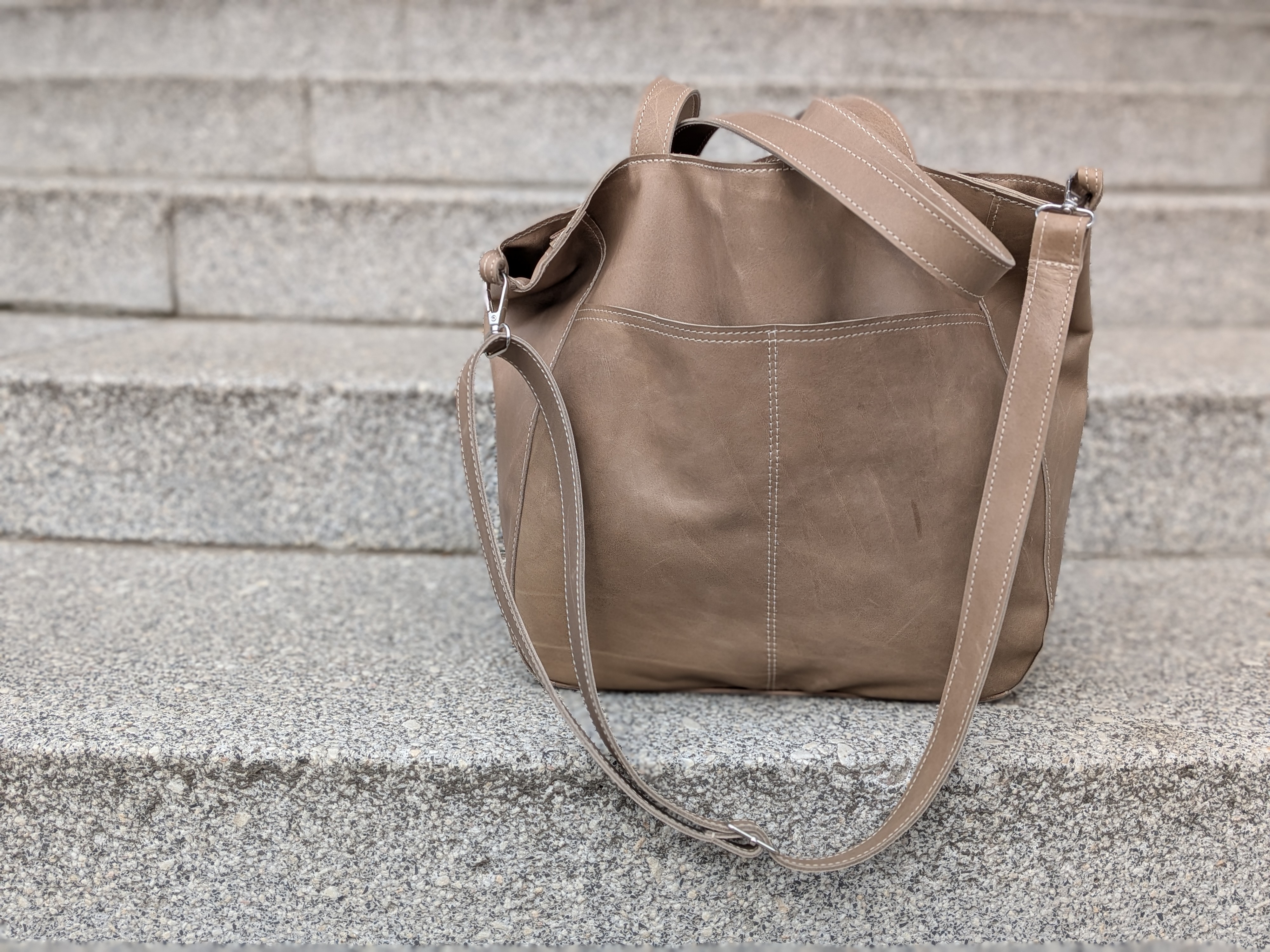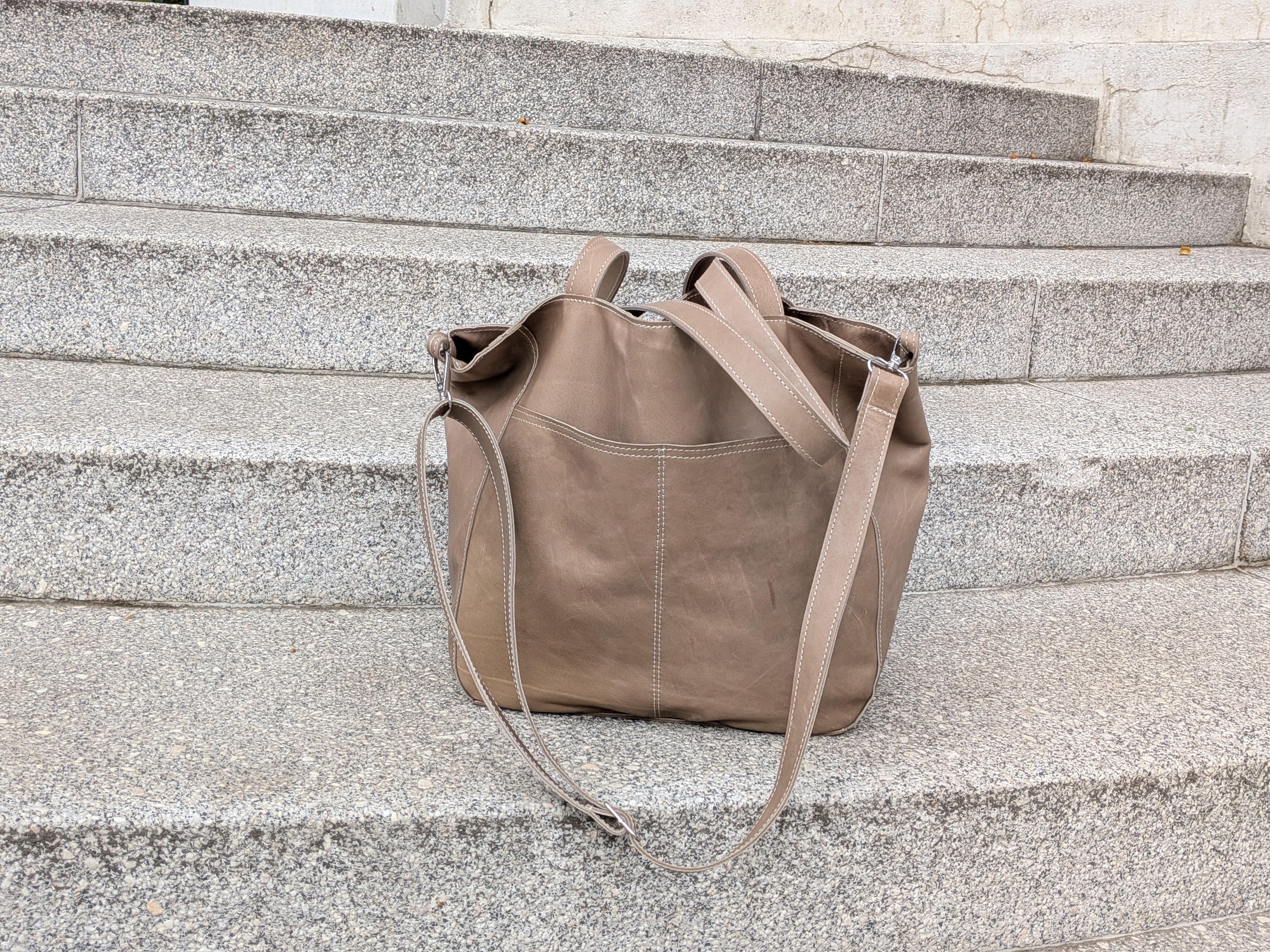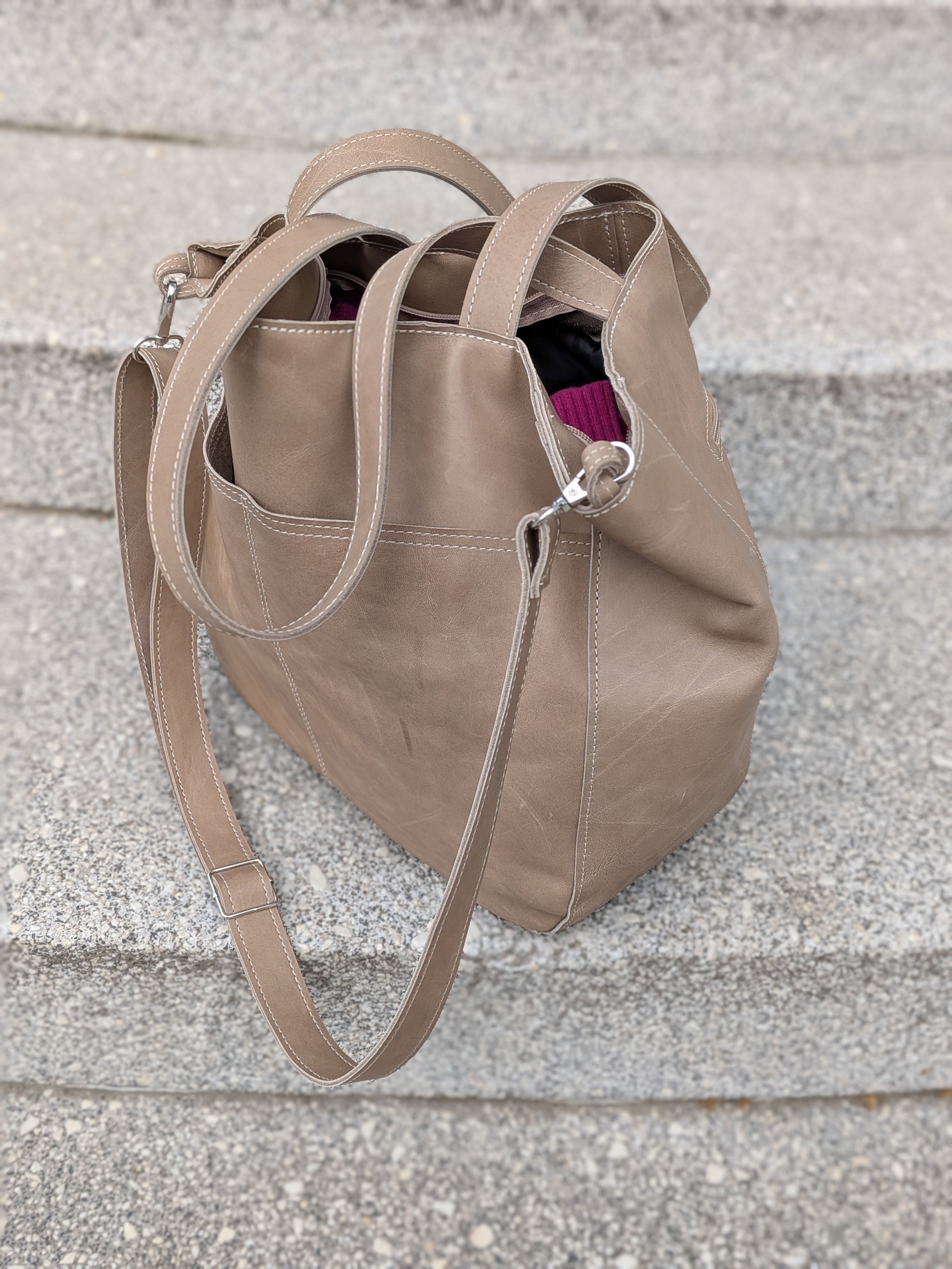Torba z miękkiej skóry NATURALNEJ licowej, gładkiej, ładnie układa się podczas noszenia.