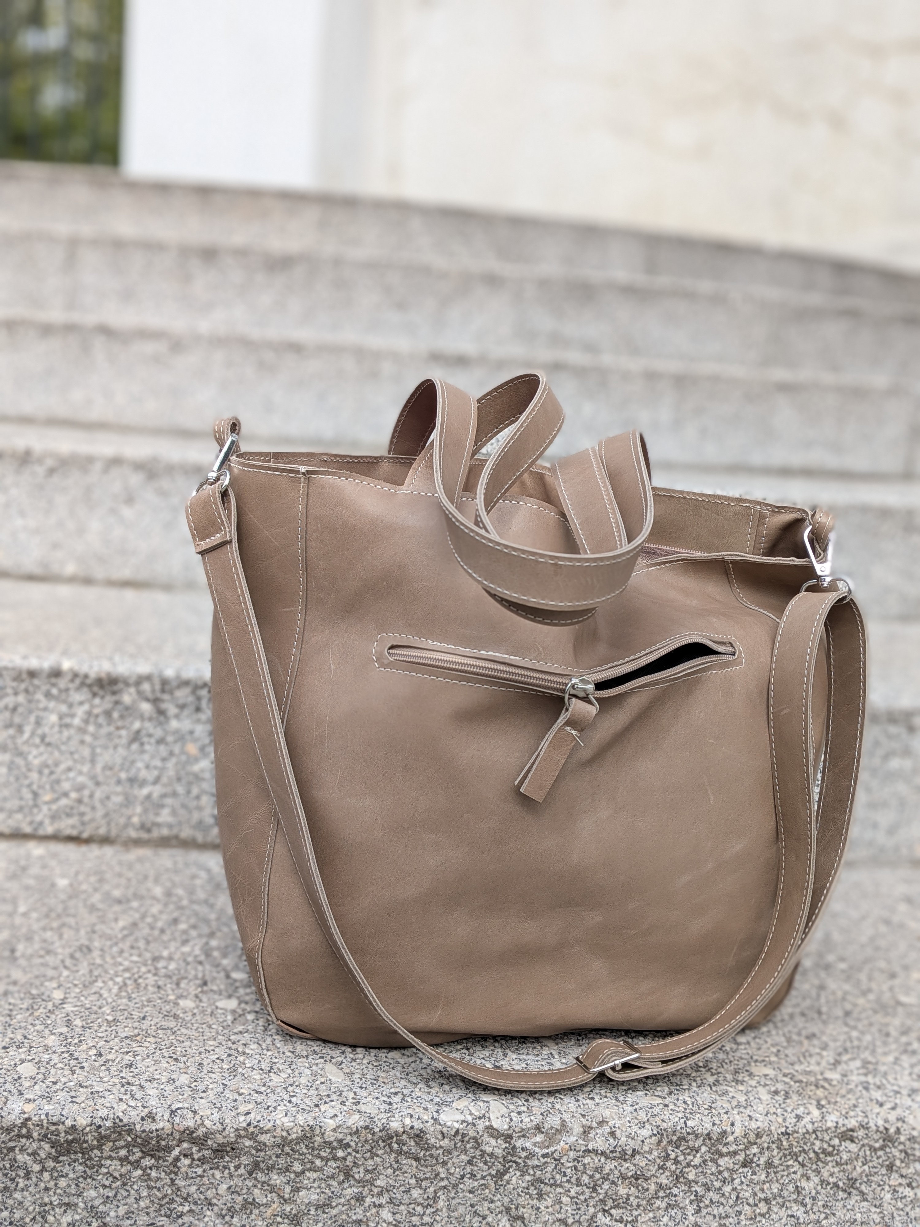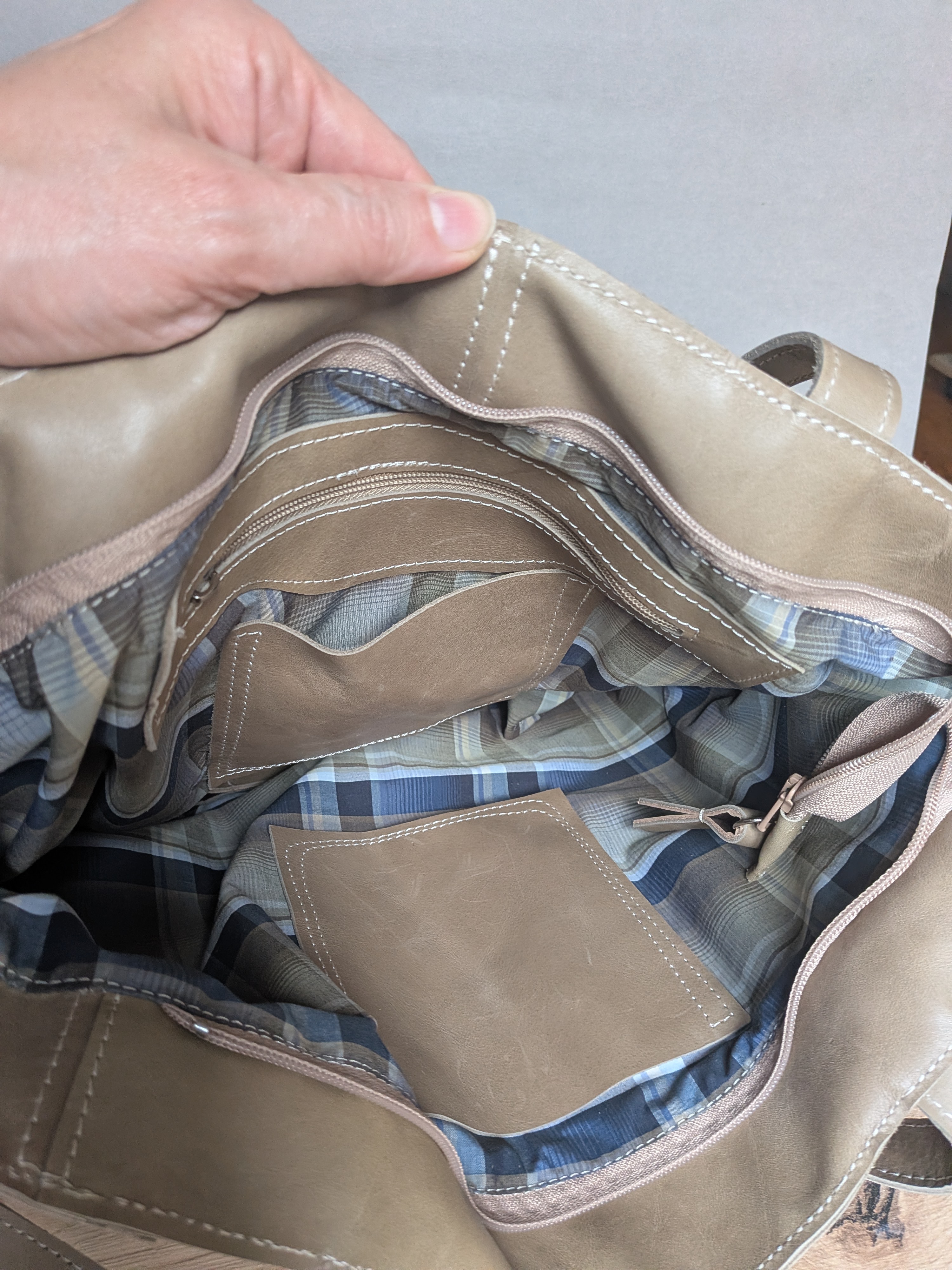 Beżowa skórzana torba z kieszeniami