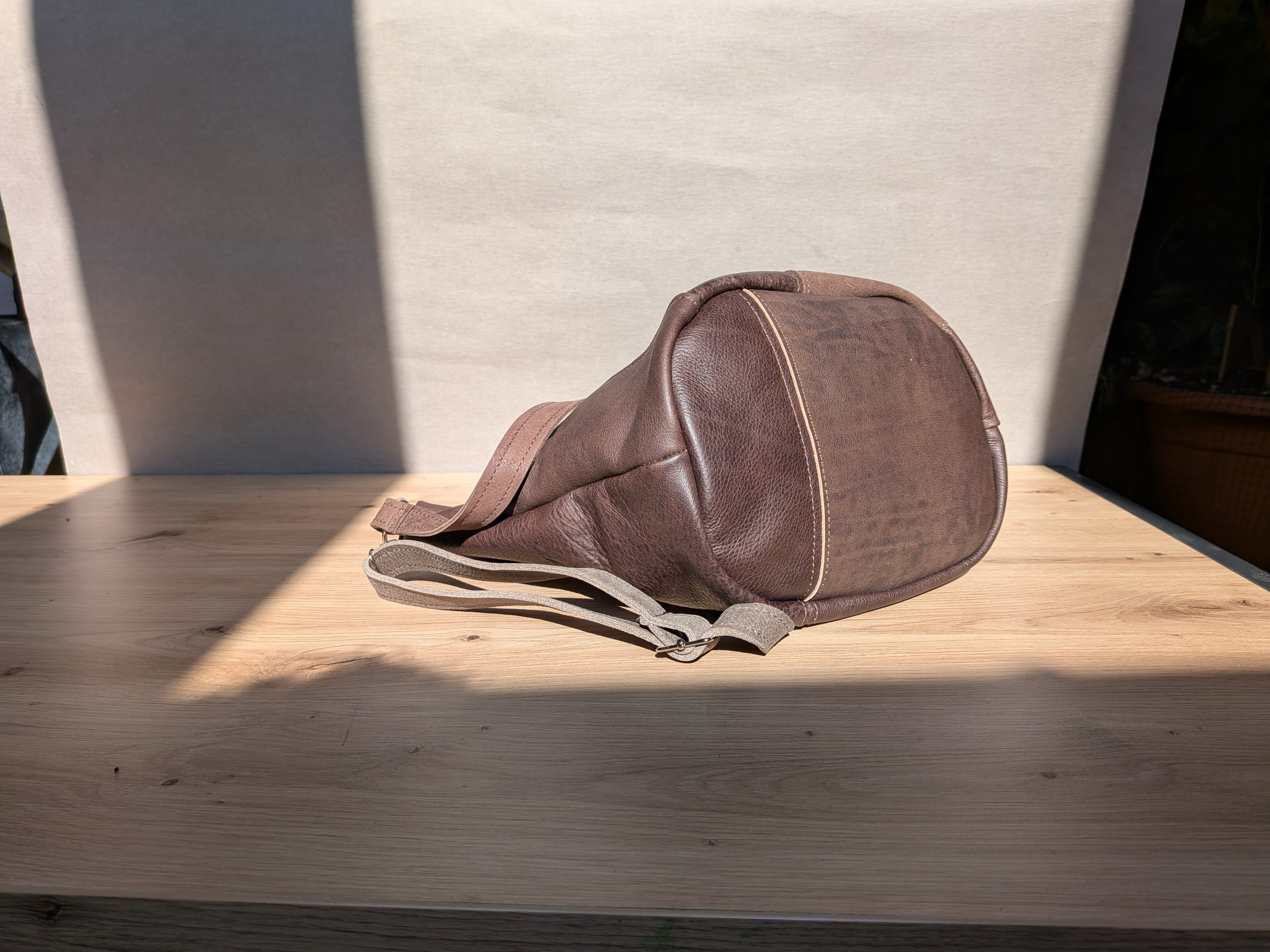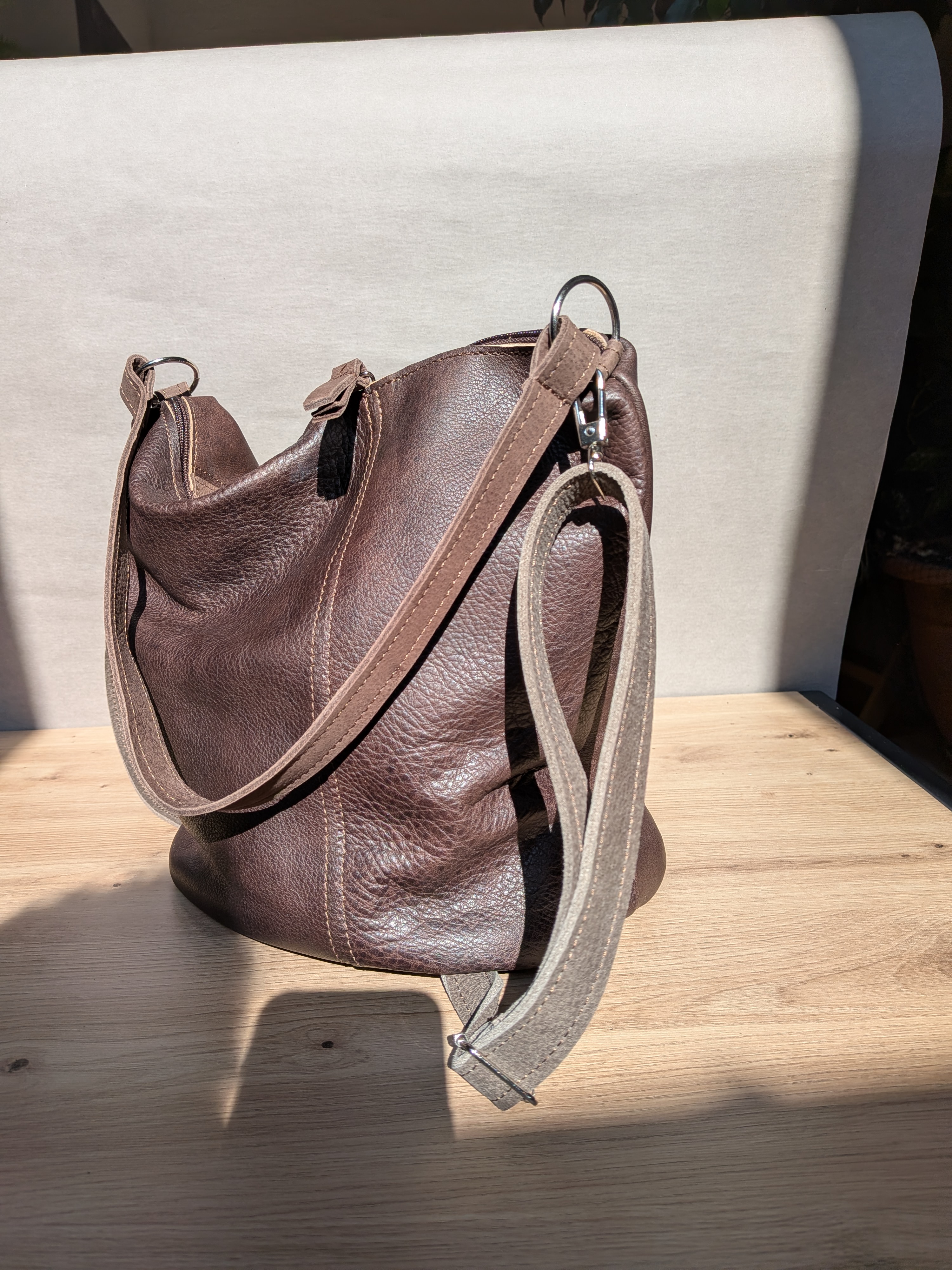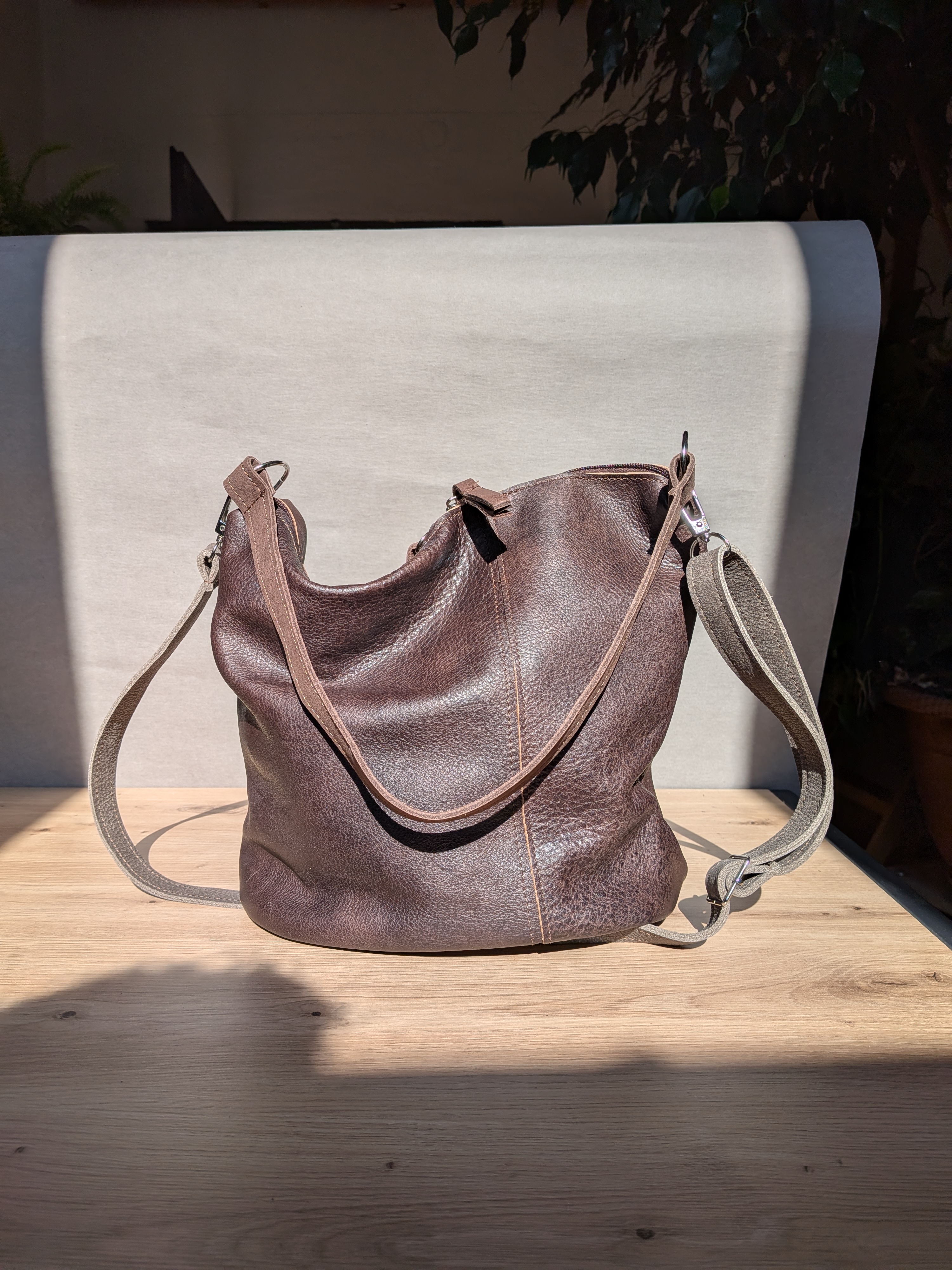 - piękna czekoladowa licowa skóra połączona z podobną w kolorze tabaczkowym
