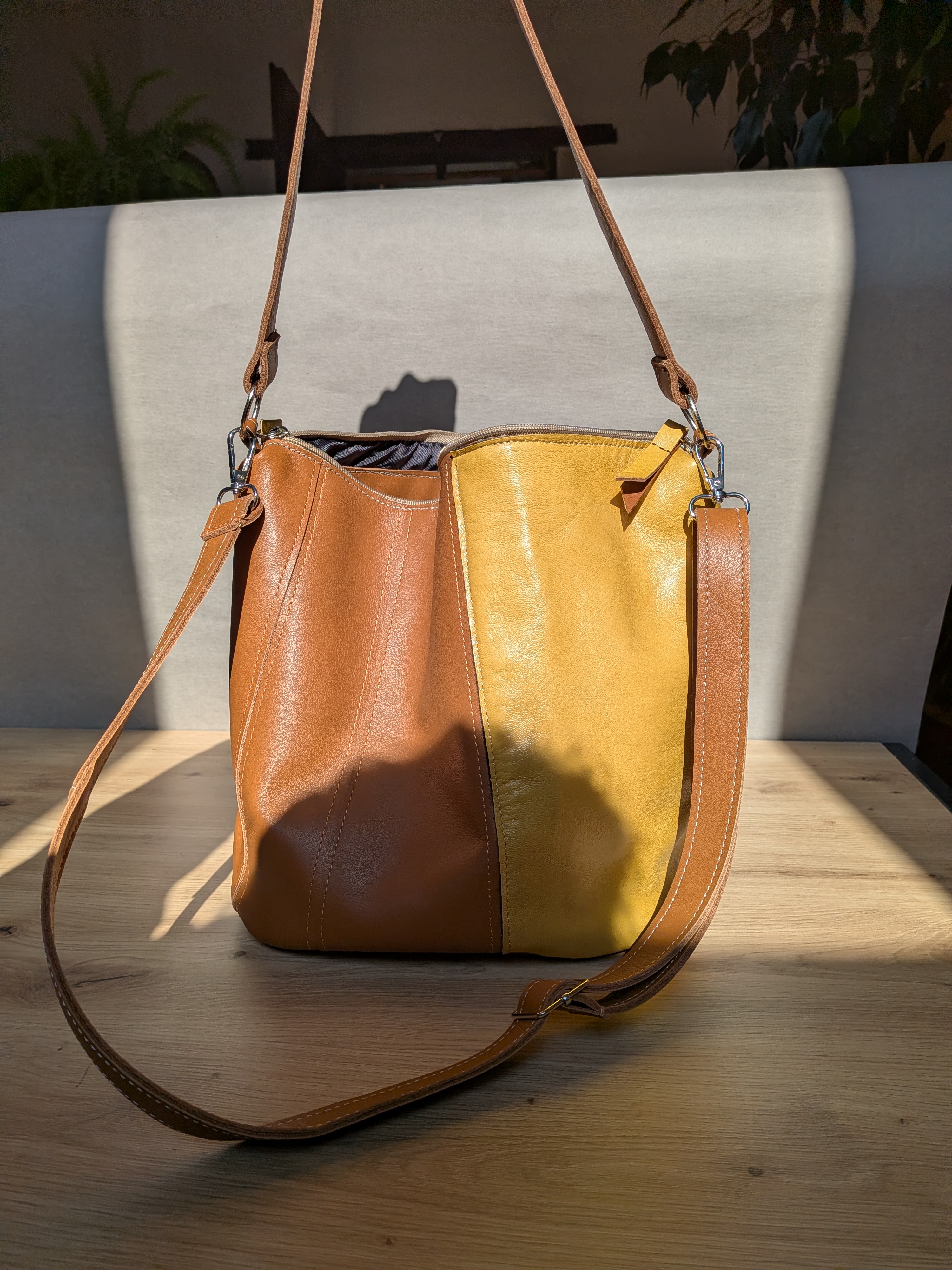 Torebka ma krótszy pasek na ramię 50 cm oraz Długi regulowany maks. dł. 120 cm.