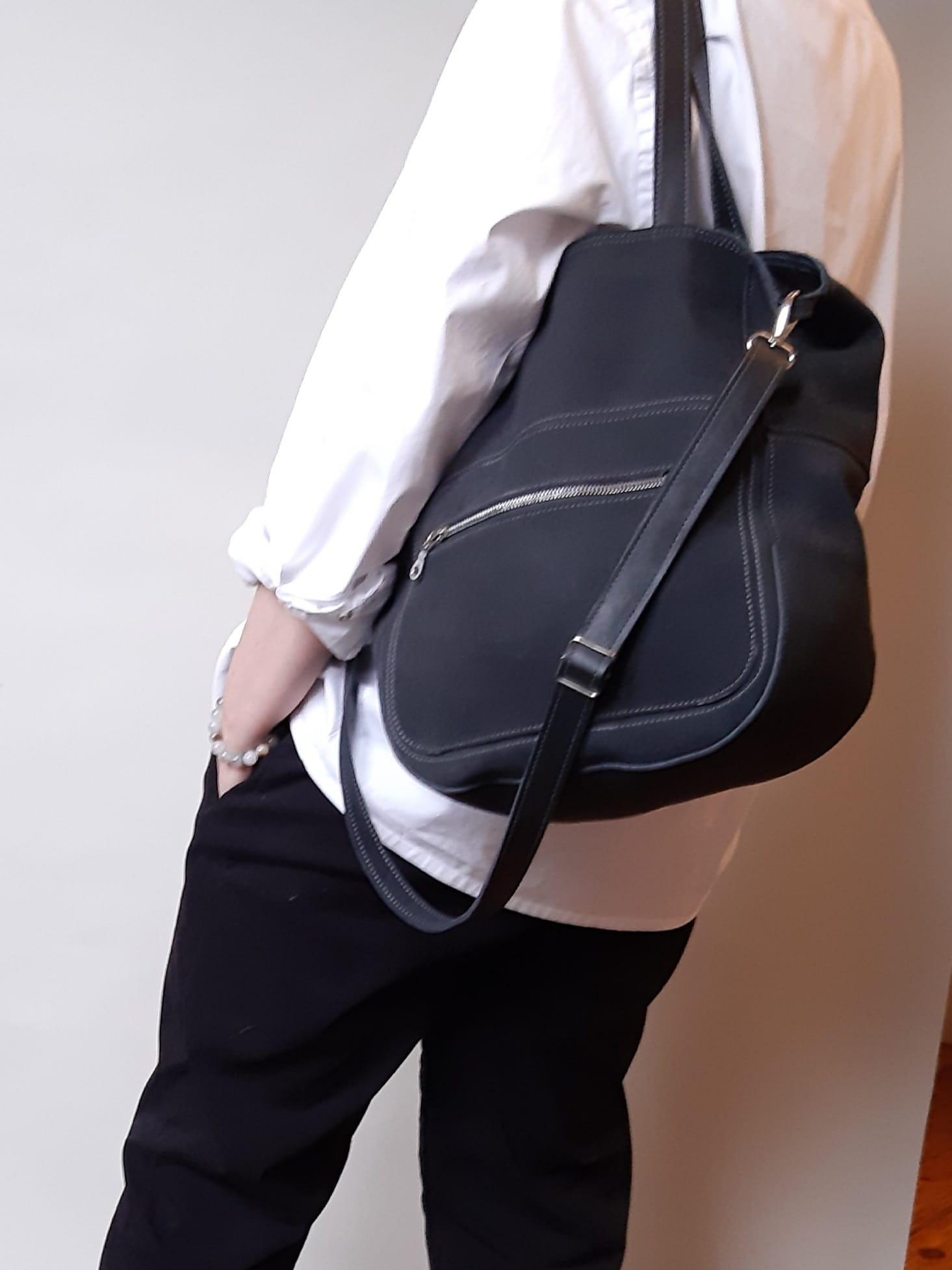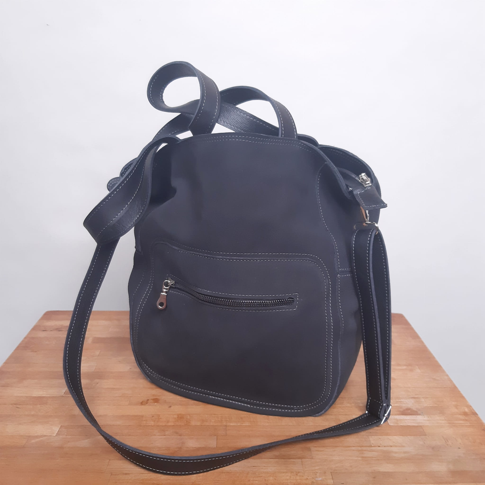 Duża skórzana grafitowa torba.