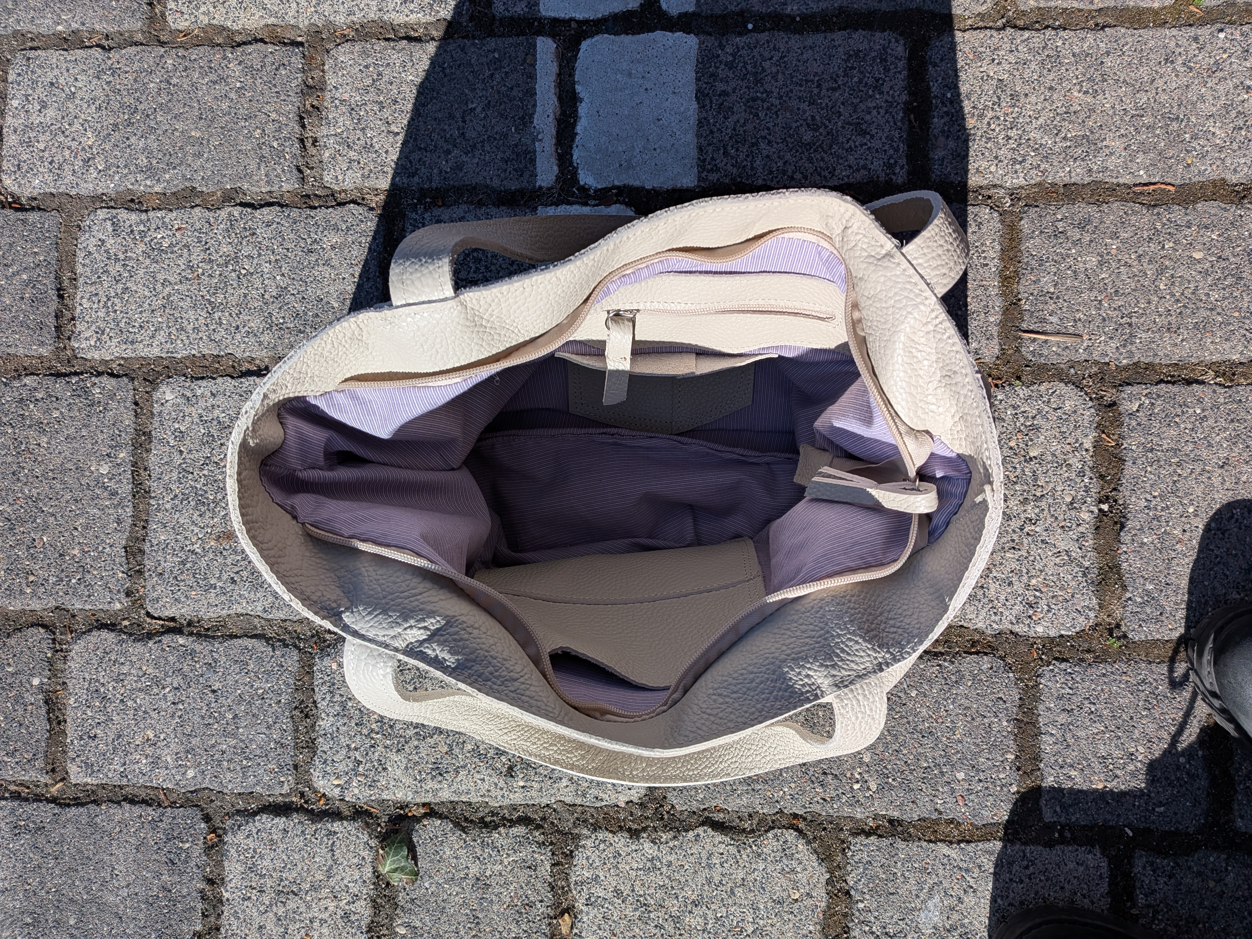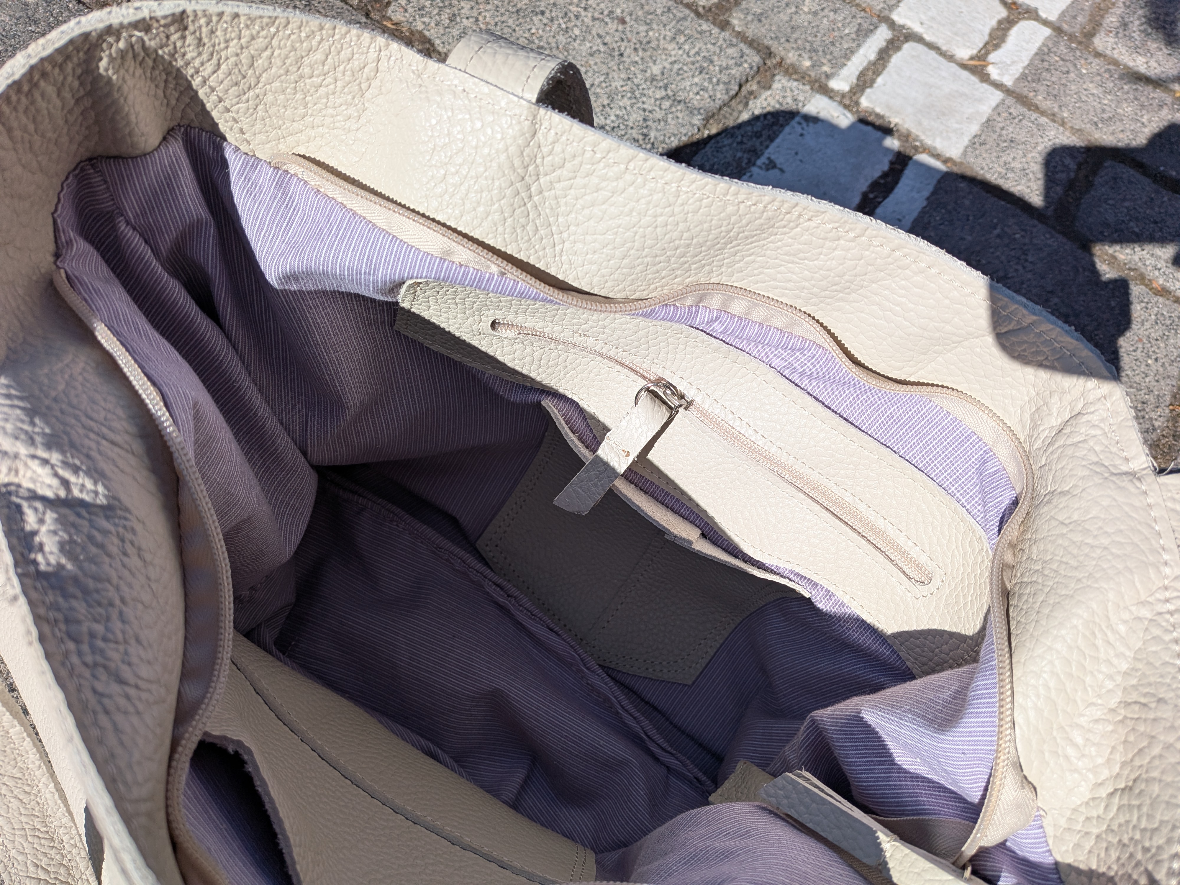 Jasno beżowa skórzana torba z kieszeniami po bokach (1)