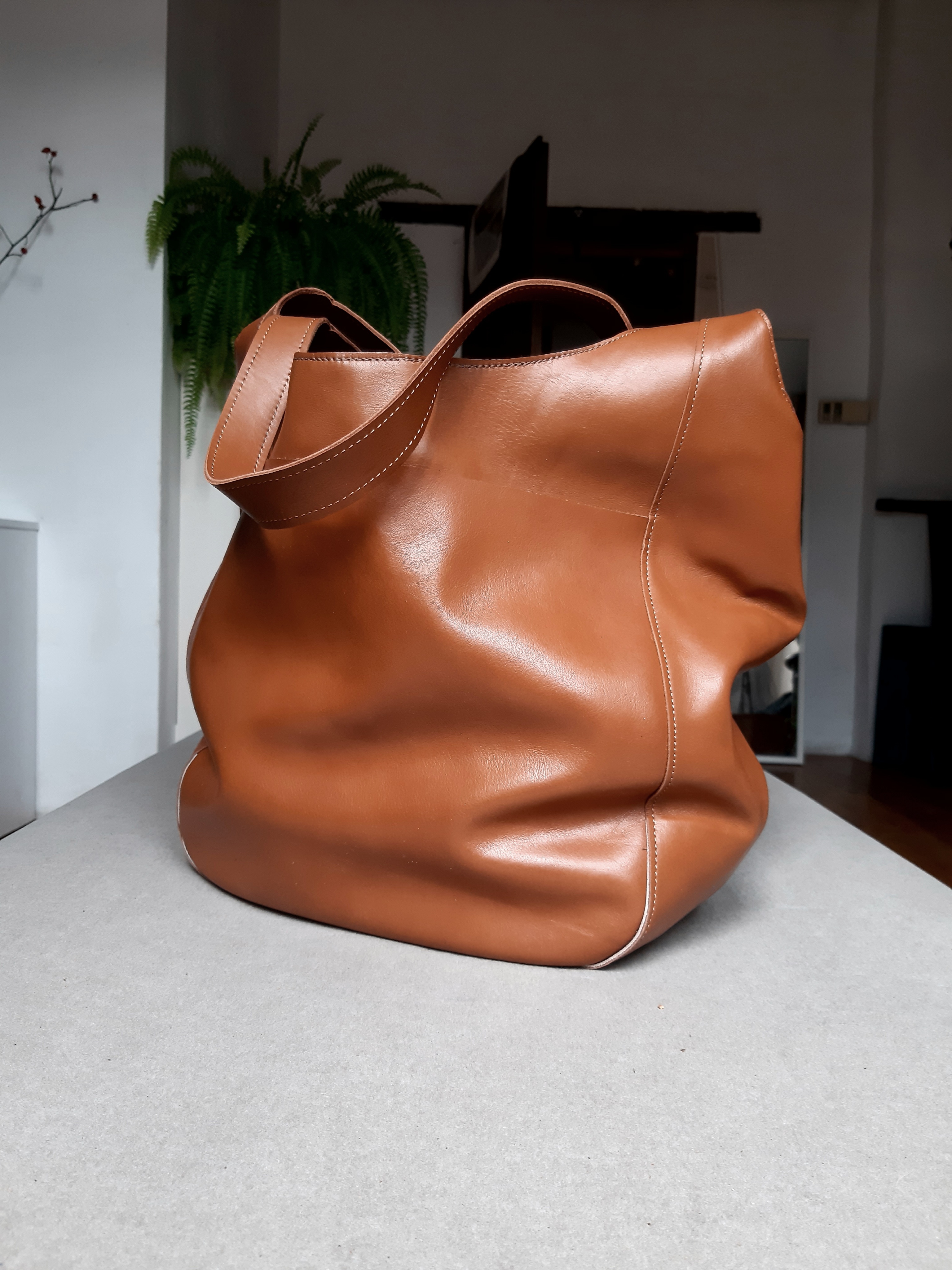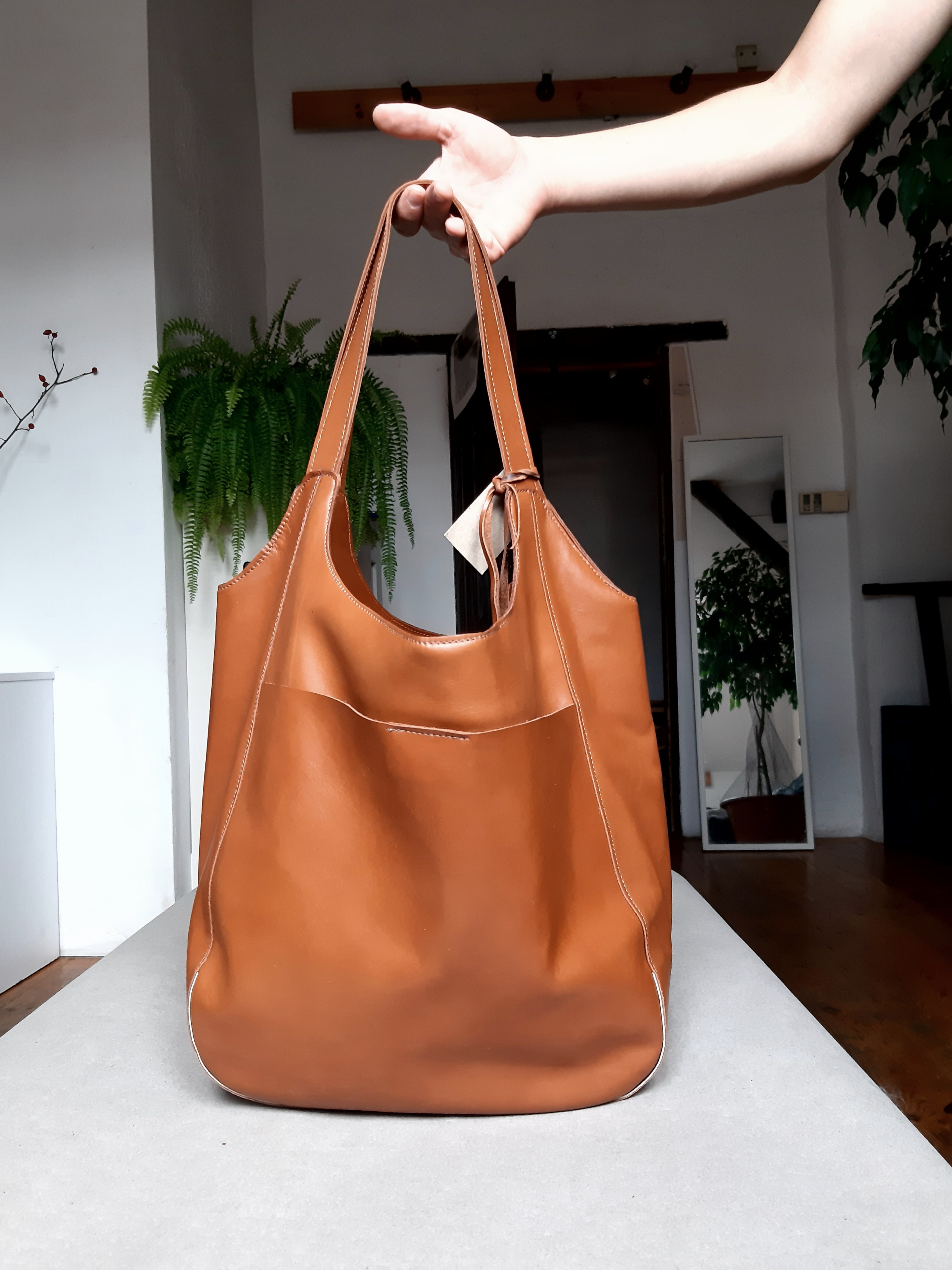 Piękna rudo - brązowa skórzana torba. Uszyta ze skóry naturalnej.