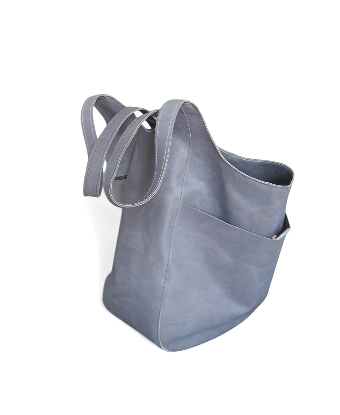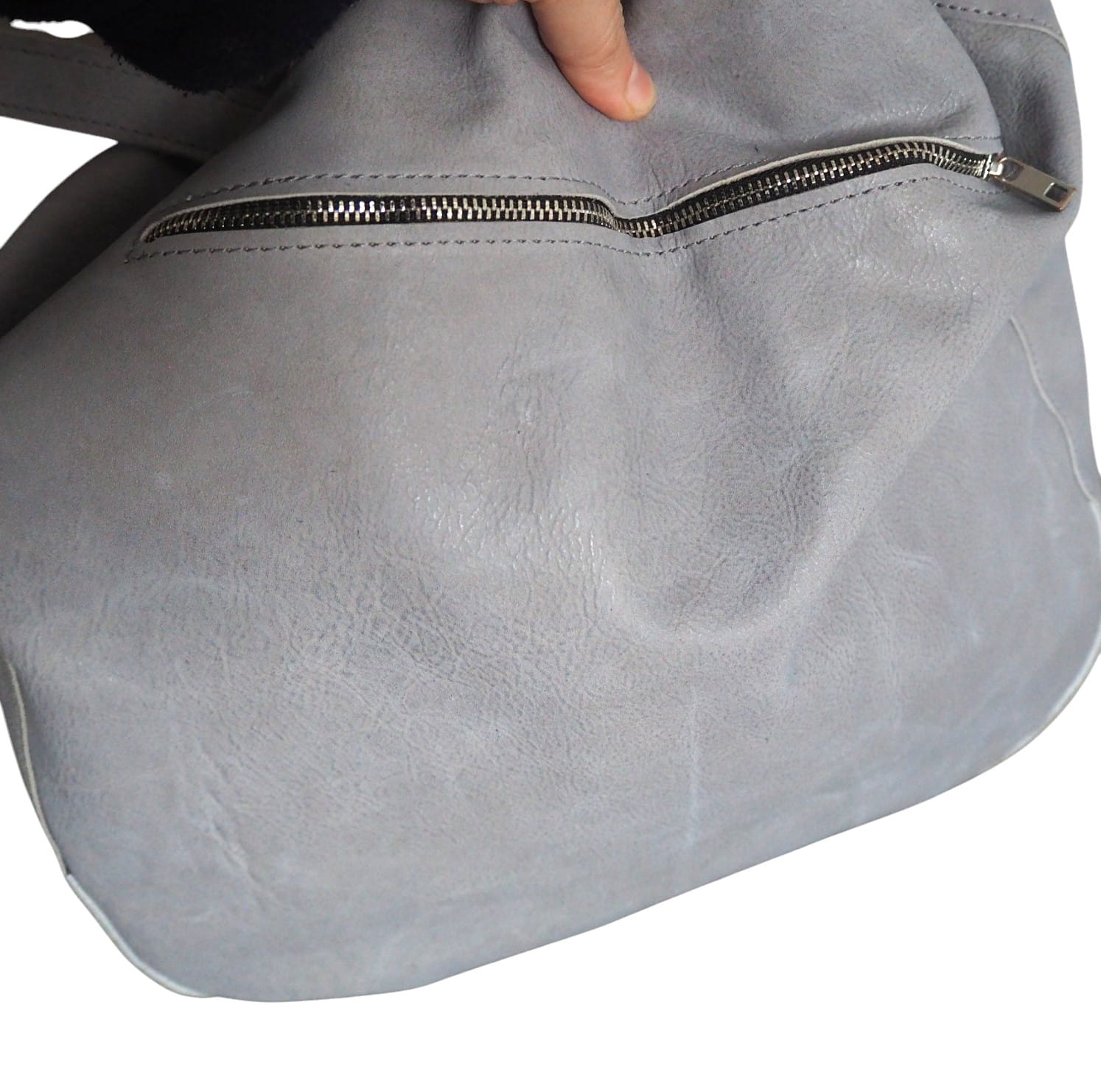 Szaro - popielata skórzana torba worek